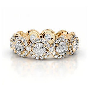 The designer deconstructed the classic eternity band into several "stellar units," where the halo moissanites in each unit resemble companion stars clustering around the center stone (symbolizing the core of love). The segmented structure subtly conveys that "love is made of countless fragmented moments, yet forms a perfect circle through mutual cherishing,"